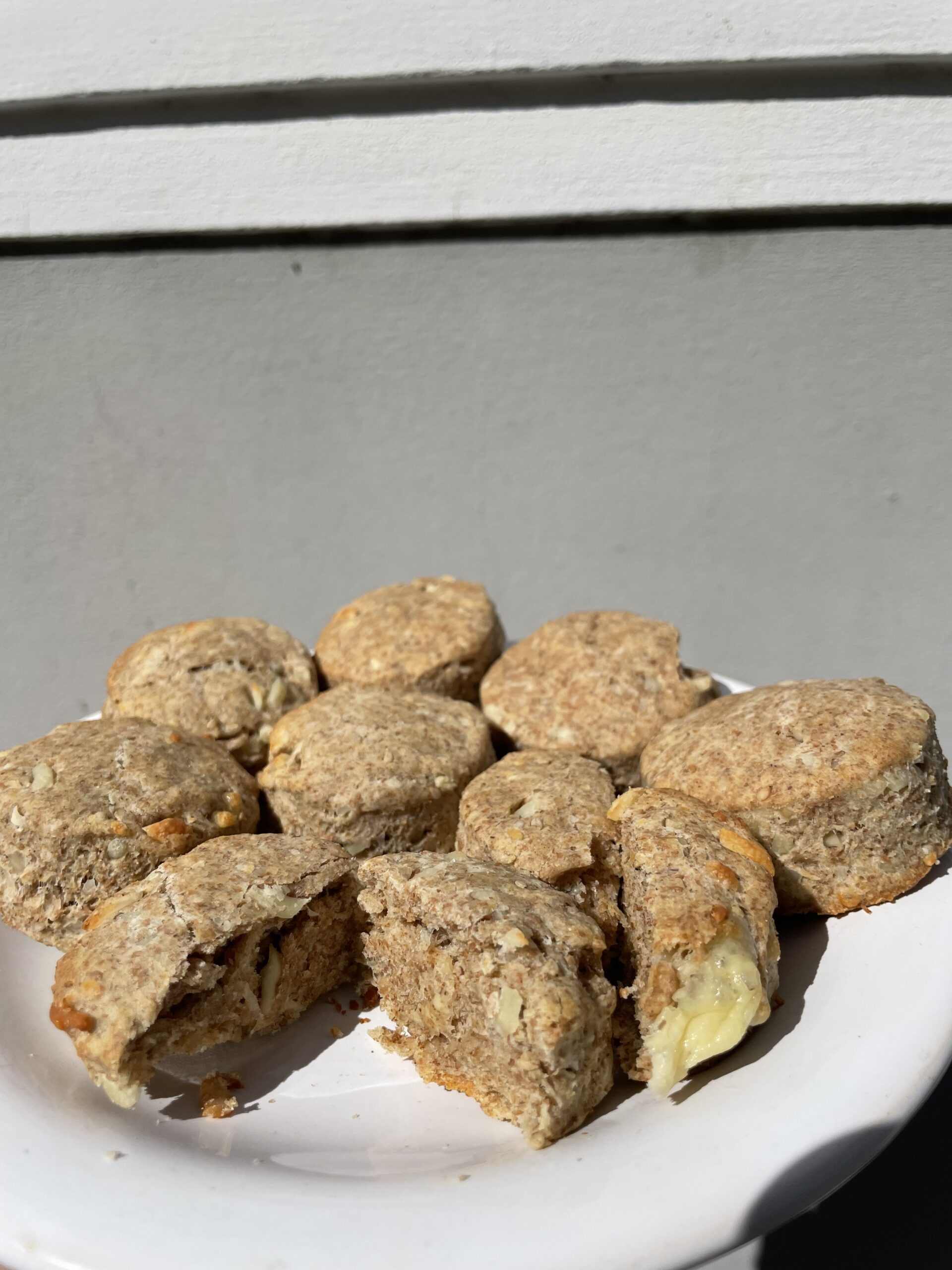 Scones de Queso Integrales (bolsa de 6 unidades). Con todo el sabor del queso y hechos con harina integral para que disfrutes sin culpa. ¡Perfectos para acompañar con mate!